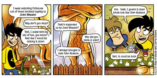 But back to my obsessive adoration of Joss Whedon. If you know me, you know that I’ve been a fan of his since Buffy premiered in October 1997 when I was a mere 12 years old, and that I’ve followed his projects ever since. I even went to see him at San Diego Comic-Con in 2009. (And almost met him! It’s a very sad story full of woe and regret; ask me about it sometime.) You could say I’ve grown loyal over the years, though hopefully not to this extent…