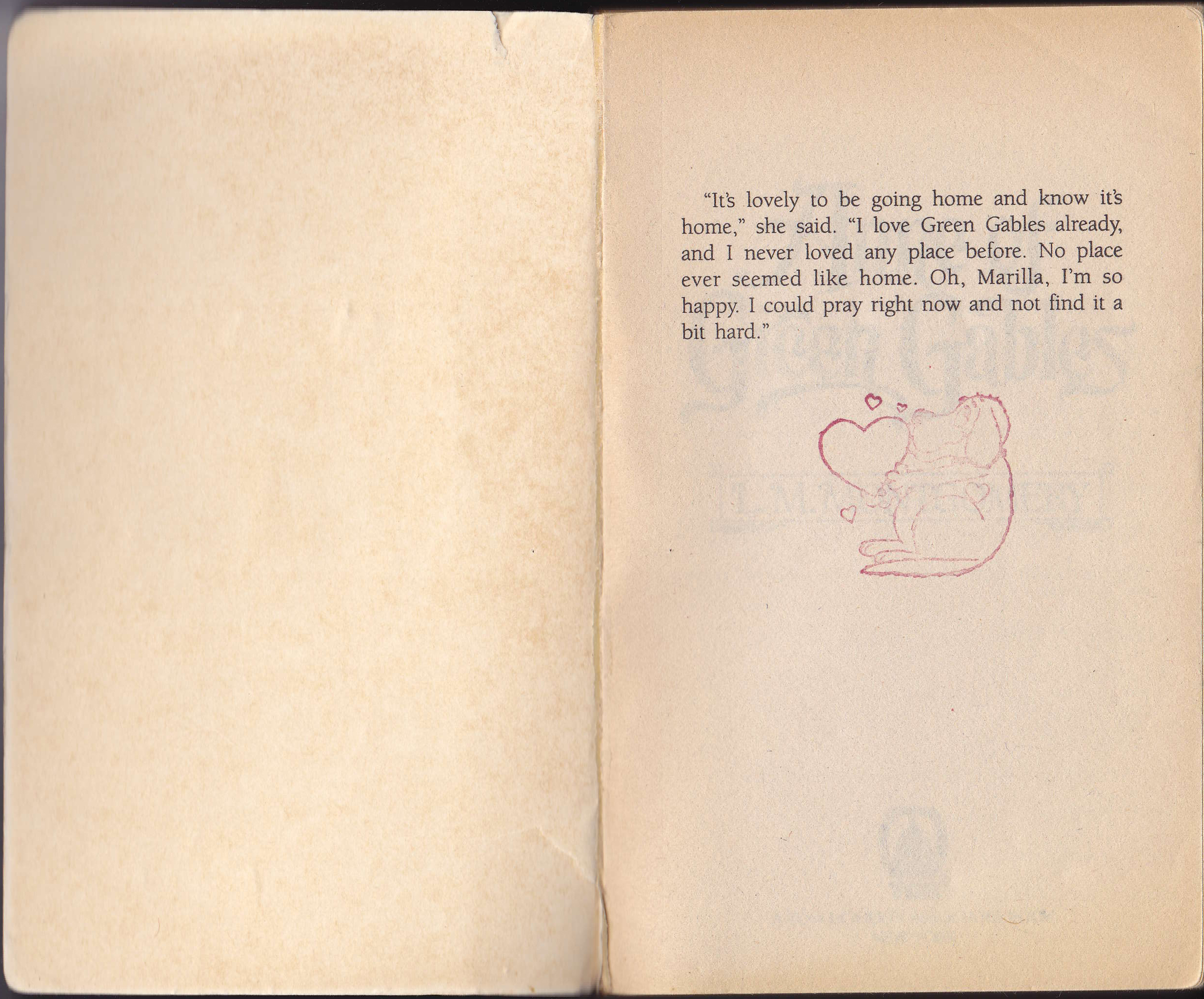 When I pick up my copy of Anne of Green Gables, I remember exactly when and where I was when I got it. I was 10, and I bought it – with money my mother gave me, of course – at a Scholastic book sale in the school library. According to the front cover, it cost $3.25 Cdn. It also still has the red Clifford the Big Red Dog stamp on the inside cover.